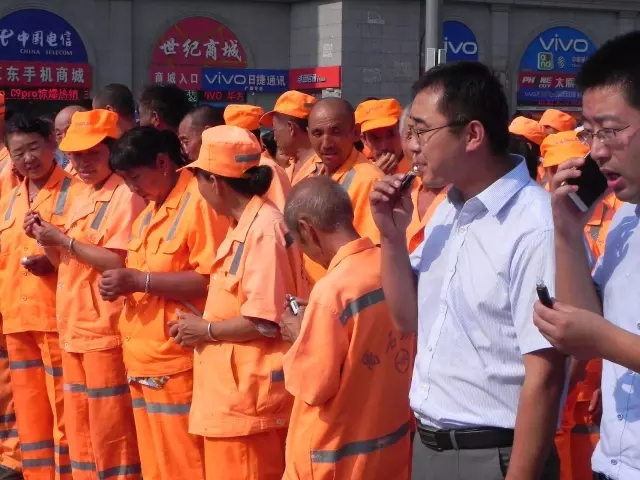 圖為:環(huán)衛(wèi)工人正在品嘗山西同仁康大藥房送上的藿香正氣口服液