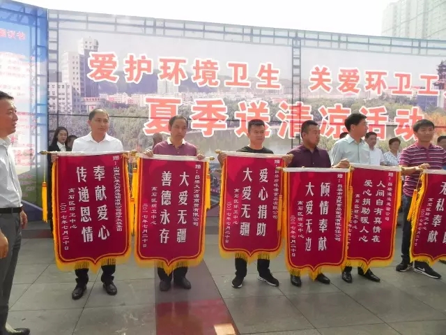 圖為:環(huán)衛(wèi)中心也向愛心企業(yè)回贈榮譽(yù)錦旗一面
