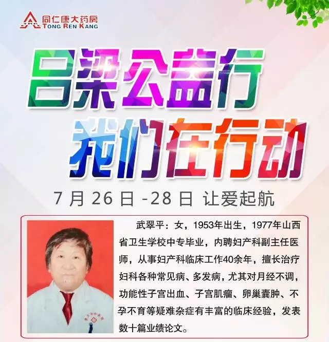 因此,山西同仁康大藥房7月26日-28日在孝義藥房特邀孝義知名專家開展“關愛健康 服務百姓”公益活動,讓愛的光芒照耀在每一個人的臉上,讓愛的溫暖融入每一個人的胸懷,讓愛的力量戰(zhàn)勝一切病魔。