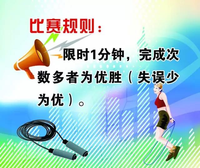 提示:比賽用跳繩自備。(專人進行計數(shù))